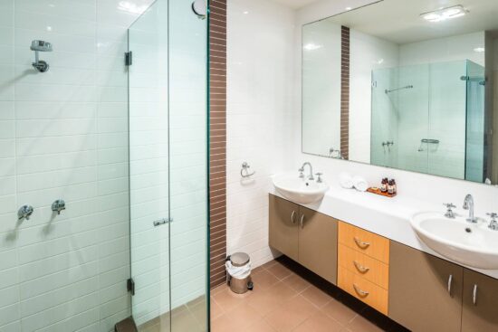 - The middle level off the entrance consists of 3 large bedrooms all with their own ensuites. The first bedroom is a queen sized room. The 2nd bedroom has a king sized bed (can be made into twin share) and the 3rd a king bed. Both these rooms have their own ensuites and open onto decked balcony.